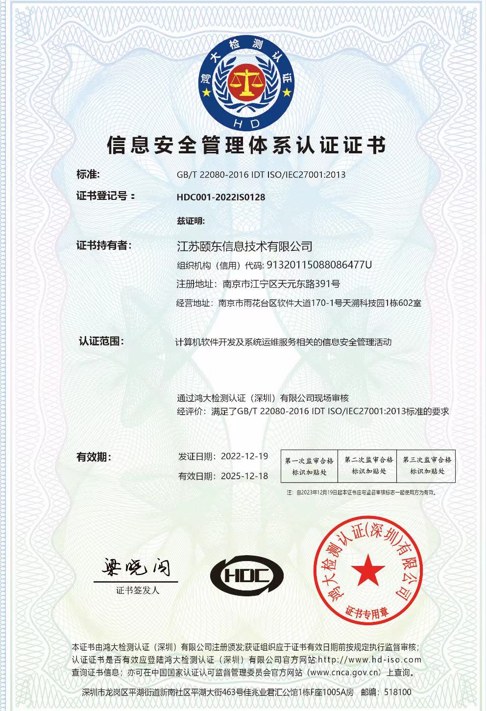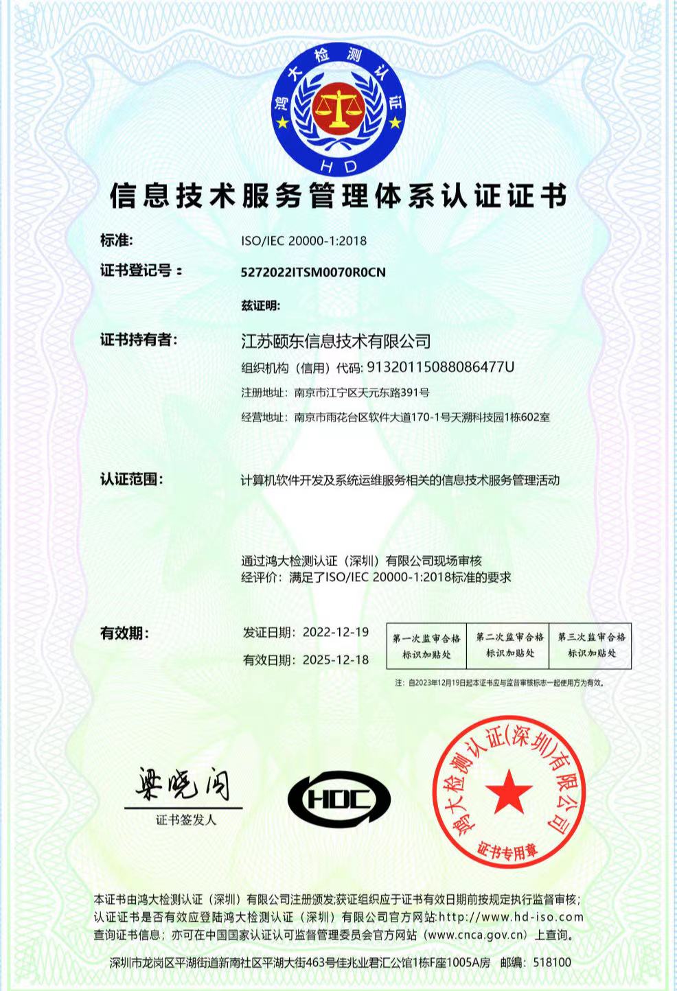 近日,江苏颐东信息技术有限公司正式获得ISO27001信息安全管理体系认证证书和ISO20000信息技术服务管理体系认证证书,标志着颐东信息在软件研发行业不仅规范化和标准化管理达到新的水平,系统集成的安全管理和技术服务更是上了一个新的台阶。