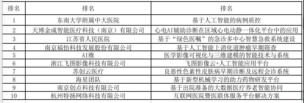 由中国卫生信息与健康医疗大数据学会、江苏省医学会、上海市医学会、浙江省医学会和安徽省医学会共同主办的“2019长三角地区智能健康发展大会”于8月15日-17日在南京召开,“颐东杯”2019江苏智慧医疗创新大赛是由江苏省医学会主办,江苏省医学会医学信息与智能健康分会,江苏省医学会数字医学分会、南京医科大学生物工程与信息学院,颐东科技集团(江苏)有限公司共同协办。经过初赛筛选,共10个项目进入本次大赛决赛。通过项目路演、评委答辩和社会效益、经济效益、市场可行性、技术创新性等模块的综合评估,最终评选出一等奖1名、二等奖2名、三等奖7名。(明天举行的“2019长三角地区智能健康发展大会”开幕式上将给获奖单位颁奖)