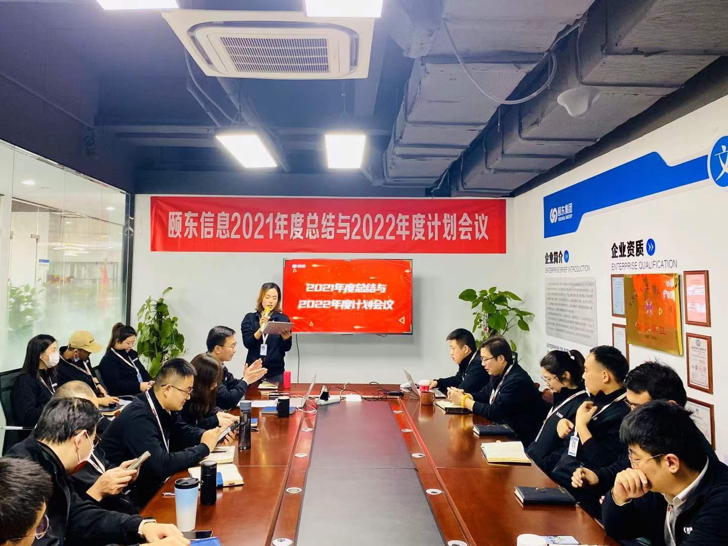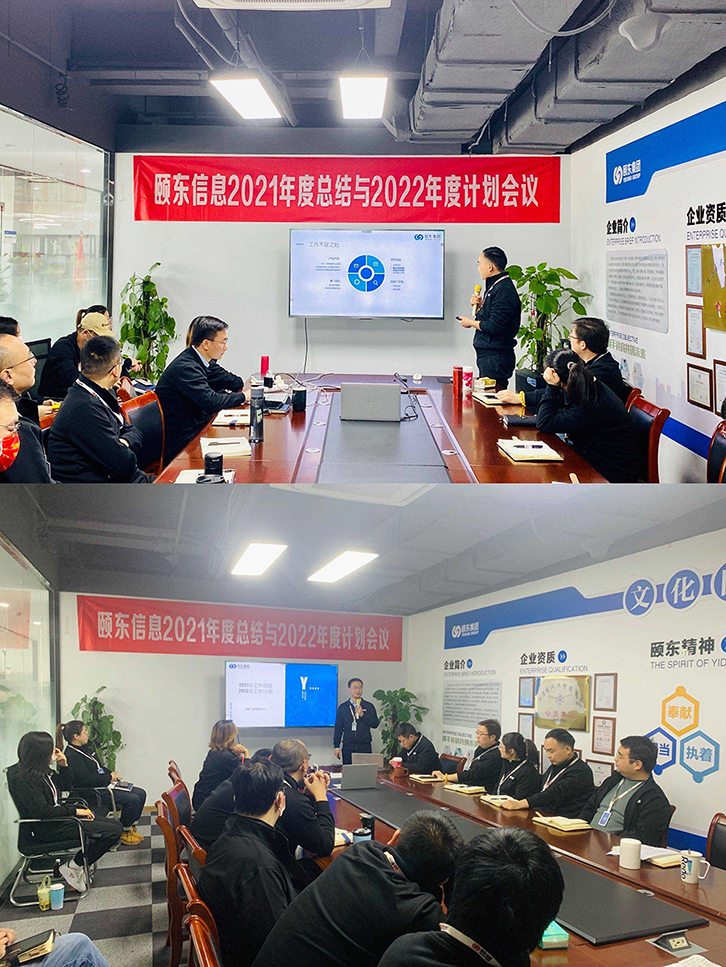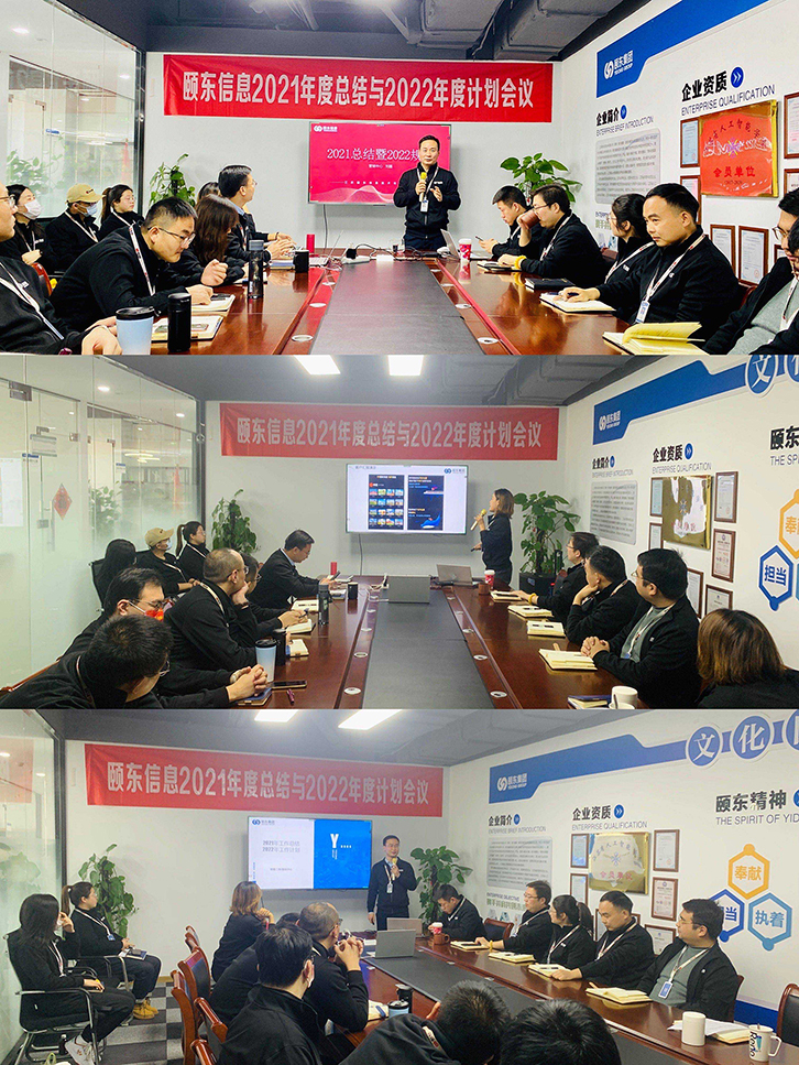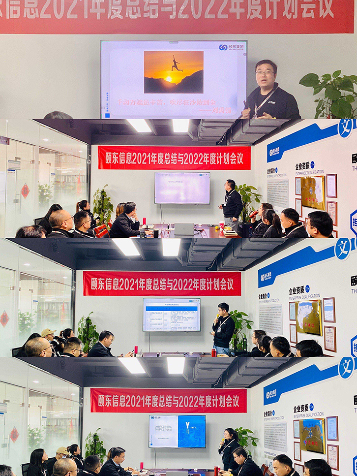 上午9点,主持人宣布会议开始,由颐东营销中心、产品研发中心、项目交付中心、行政人力资源中心、财务管理部的负责人及下属二级部门负责人分别做了“2021年工作总结及2022年工作计划”汇报。