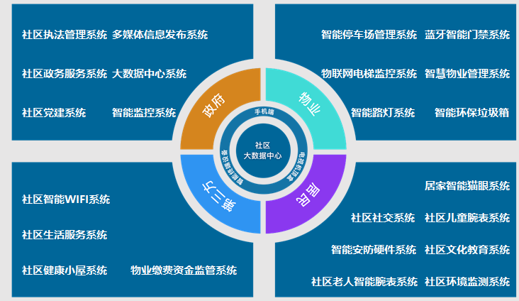 建立一整套的房产物业解决方案,覆盖政府、物业、居委会、居民等各个环境